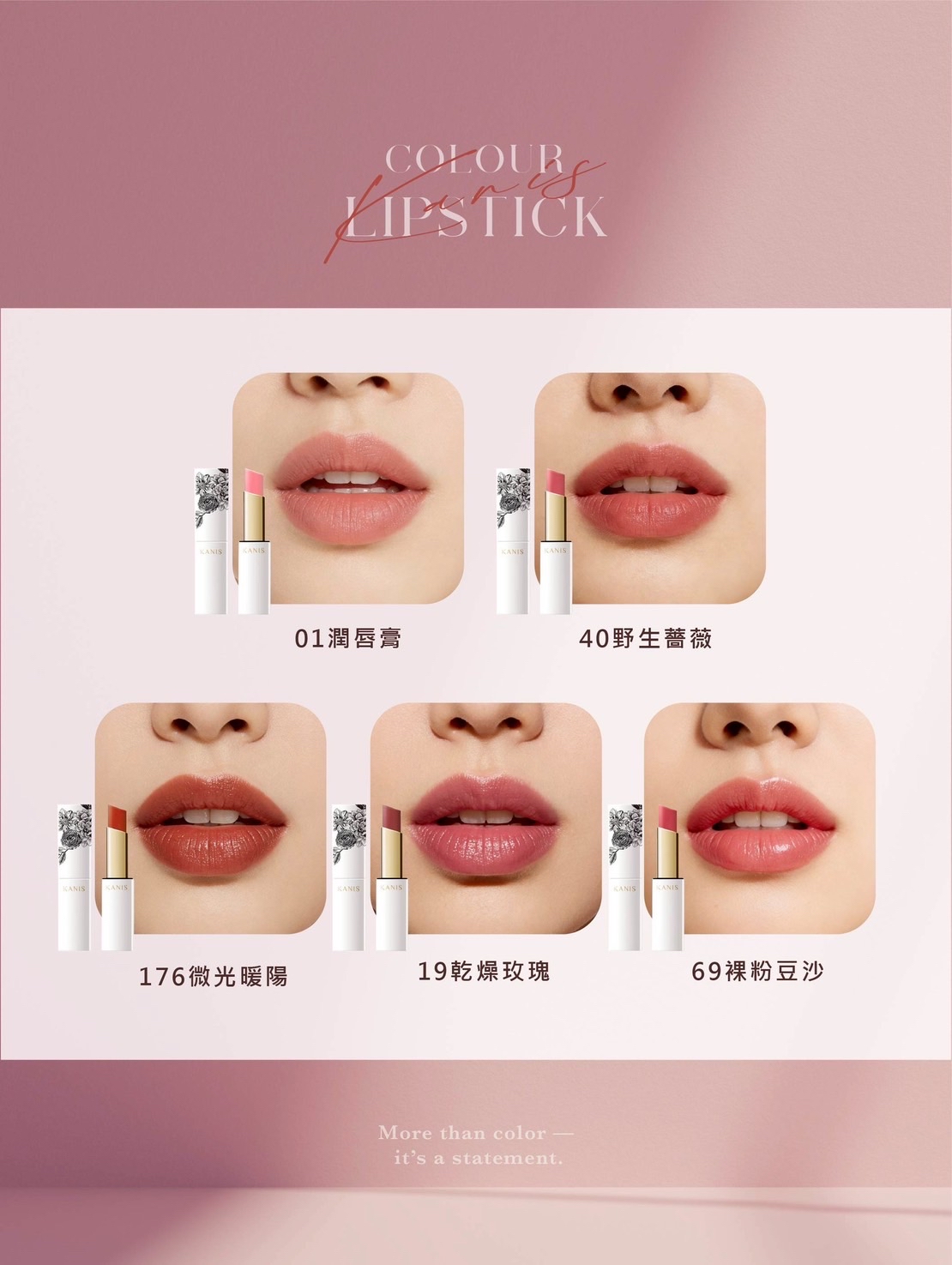 (Love you)KANIS水潤光感唇膏(Love you) 5大唇色 改版上市!! ▪️01水潤光感潤唇膏(超粉潤色) ▪️19乾燥玫瑰 ▪️40野生薔薇 ▪️69裸粉豆沙 ▪️176微光暖陽 📝功效性成分📝 ◆乳木果油:乳木果油具有較高的不飽和脂肪酸含量,富含亞油酸和油酸,同時也含有豐富的維生素和抗氧化物質,具有保濕、滋潤皮膚、等多種功效,可以有效地改善乾燥、粗糙、等肌膚問題。 ◆維生素E醋酸脂:能保護膠原蛋白和脂質體等免受到自由基的攻擊,使皮膚能從內產生保濕作用、滋潤肌膚、減少粗糙。 ◆維生素E:1. 減少不飽和脂肪酸的氧化。 2. 有助於維持細胞膜的完整性。 3. 具抗氧化作用。4. 增進皮膚與血球的健康。5. 有助於減少自由基的產生。 ◆大豆油:含豐富卵磷脂及維他命E,有助於肌膚潤澤與保濕性。